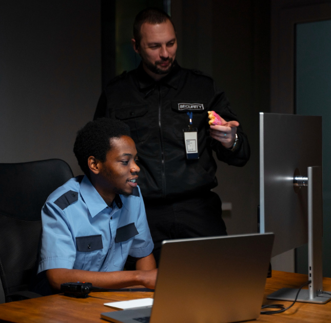 Deployment of trained and professional security personnel to monitor and protect client premises